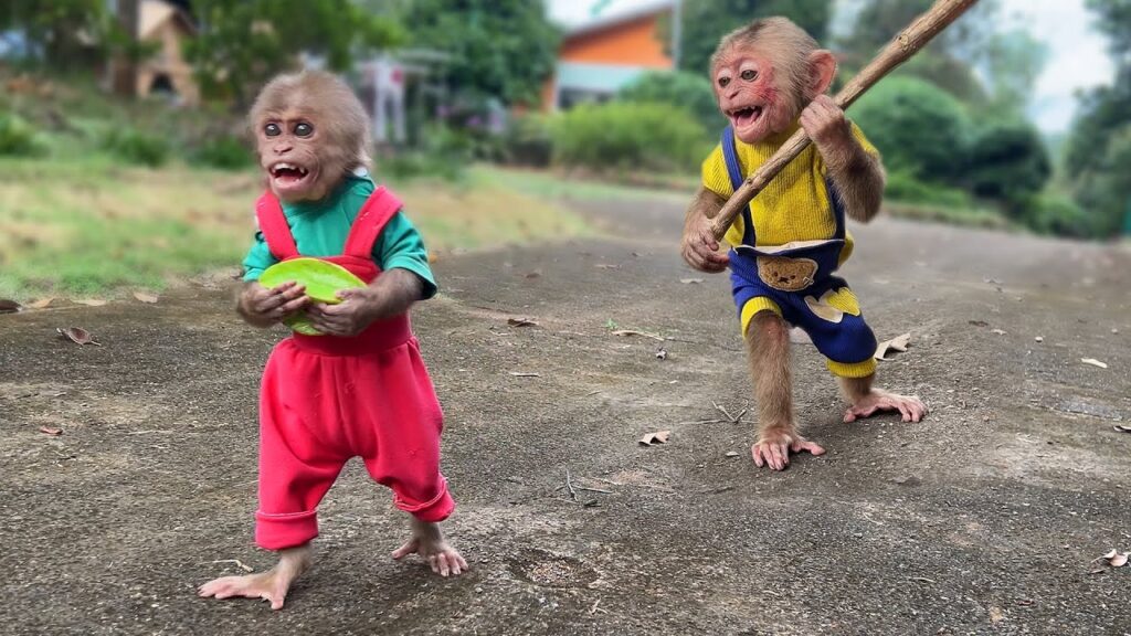 Bon and Moon, were enjoying a playful morning together. They were best friends, always chasing each other, sharing snacks, and swinging from the trees like a true jungle duo.